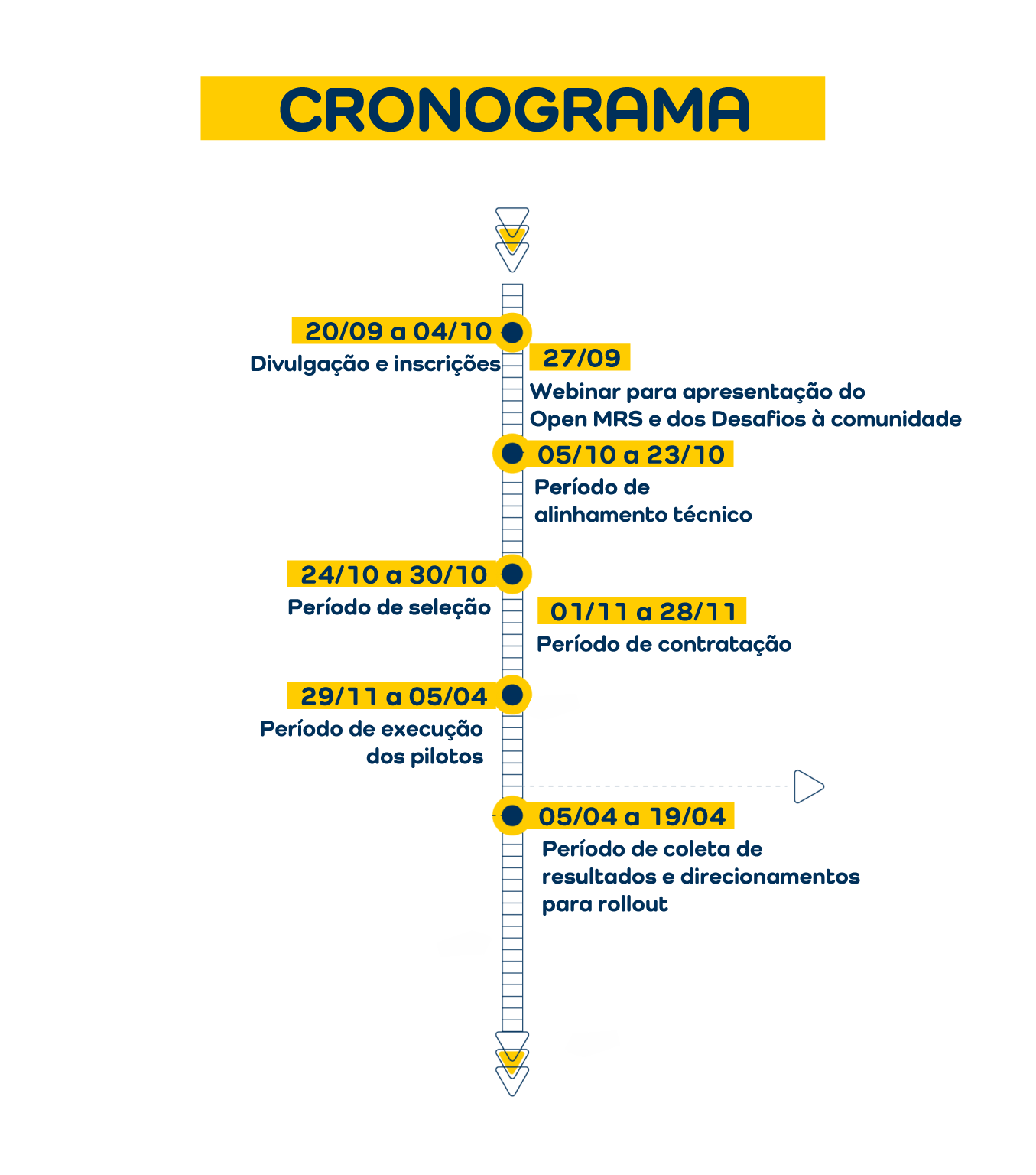 Nesta terceira edição foram selecionados dois desafios divididos entre desafios de manutenção e operação. Os desafios selecionados para essa edição foram: “De que maneira podemos mitigar os impactos da umidade no minério que ocasiona em rechego e otimizar o processo de espalhamento da carga e da retirada da água aparente?” (Umidade do minério nos vagões) e “De que maneira poderíamos otimizar a análise preditiva de deslizamento de taludes e aterros reduzindo os impactos operacionais?” (Deslizamento de taludes e aterros). Confira mais sobre os desafios nos briefings completos!